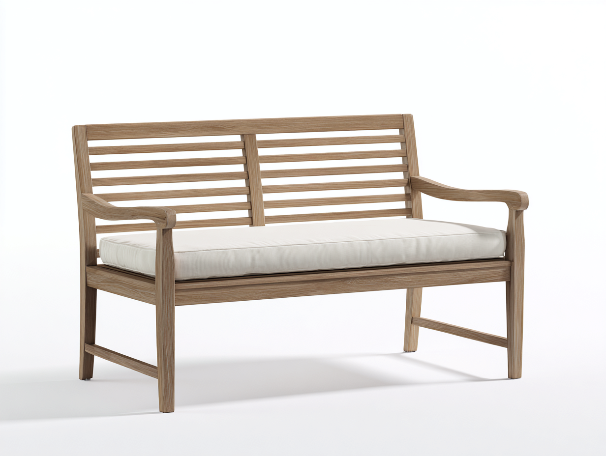 Outdoor Bench solid wood frame with backrest and cushion 150x55x85 cm - natural wood-cream - outdoor seating design