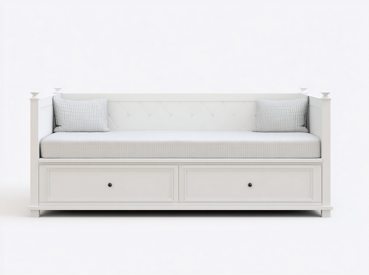 Sofa Bed Wooden Frame 200x90x80 cm - White - Classic Storage Design