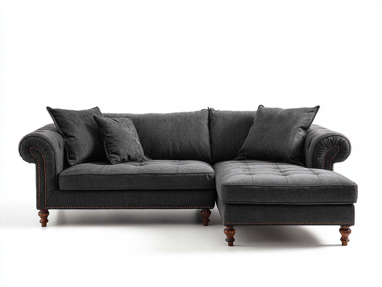 Corner Sofa Upholstered Fabric Corner Sofa 255x165x88 cm - Dark Grey - Classic Comfort Design
